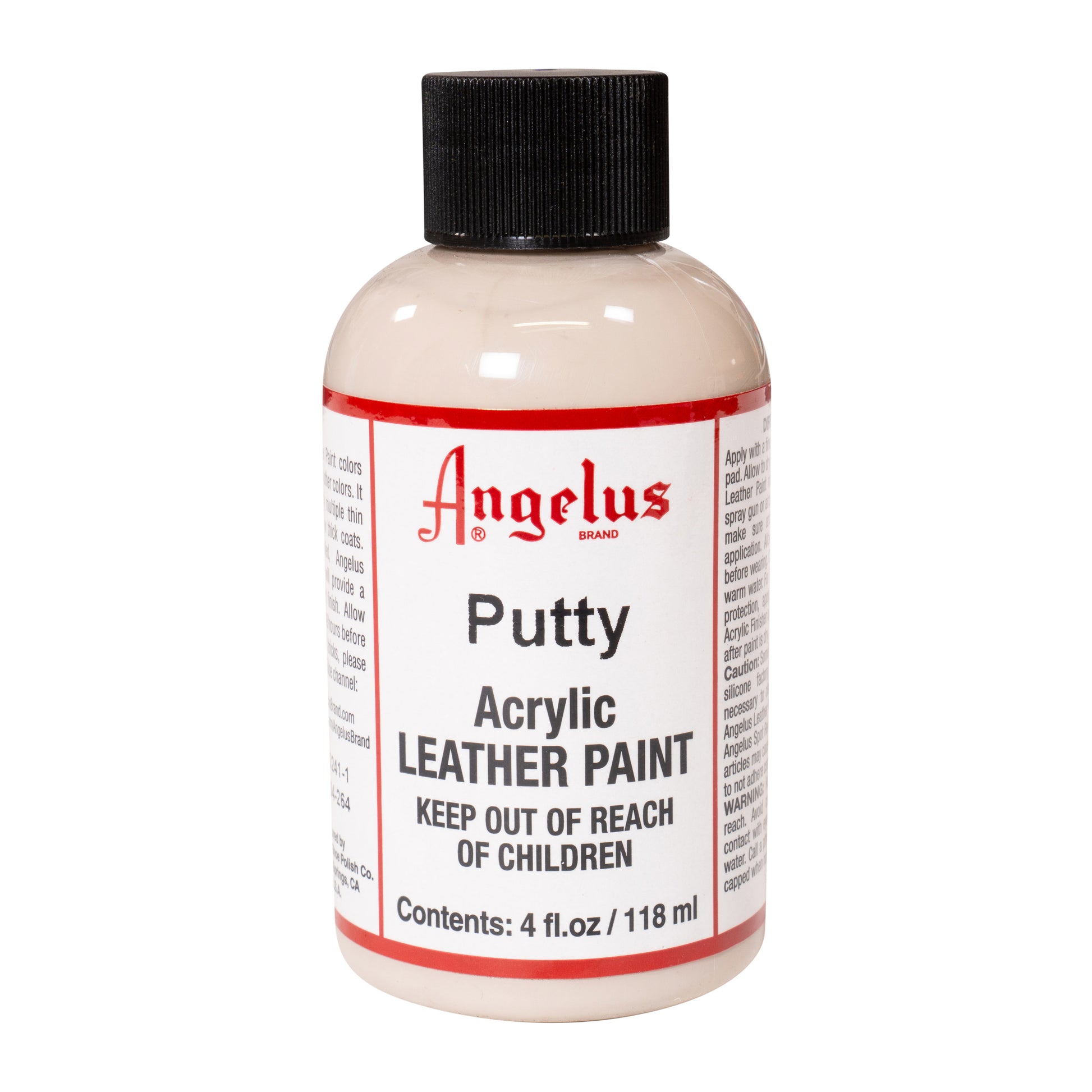 Como a tinta para couro Angelus é à base de água, o resultado é uma tinta à prova de salpicos, com a vantagem adicional de poder sempre limpar facilmente a superfície pintada. Isto dá ao couro uma boa camada de proteção, mesmo em condições meteorológicas adversas. Esta tinta está disponível em dois tamanhos diferentes de frascos: 29,5 ml e 118 ml.