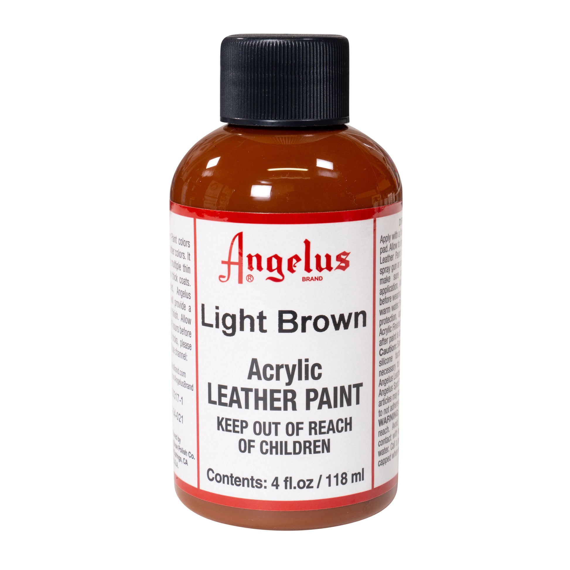 Como a tinta para couro Angelus é à base de água, o resultado é uma tinta à prova de salpicos, com a vantagem adicional de poder sempre limpar facilmente a superfície pintada. Isto dá ao couro uma boa camada de proteção, mesmo em condições meteorológicas adversas. Esta tinta está disponível em dois tamanhos diferentes de frascos: 29,5 ml e 118 ml.